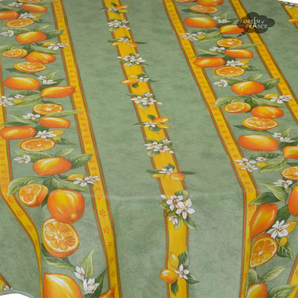 From Tissus Toselli, this coated tablecloth features bright and cheerful lemons on a green background. It is 100% cotton and is available with or without stain resistant coating. With the optional acrylic coating, spills will not go through, protecting your table. Cleanup is as easy as wiping it with a sponge. UV resistant, they resist fading and are perfect inside or outside.
