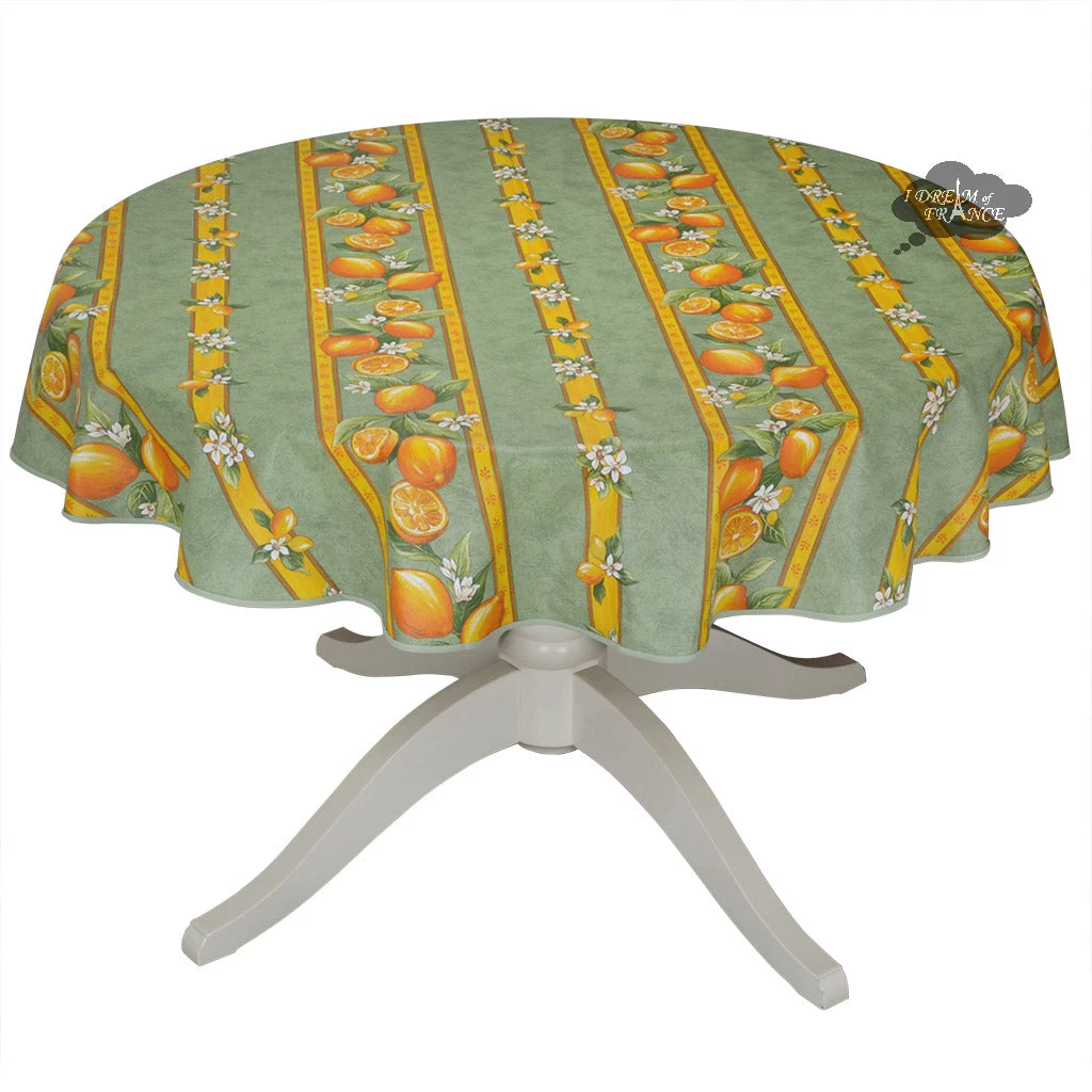 58″ Round Lemons Green Tablecloth By Tissus Toselli