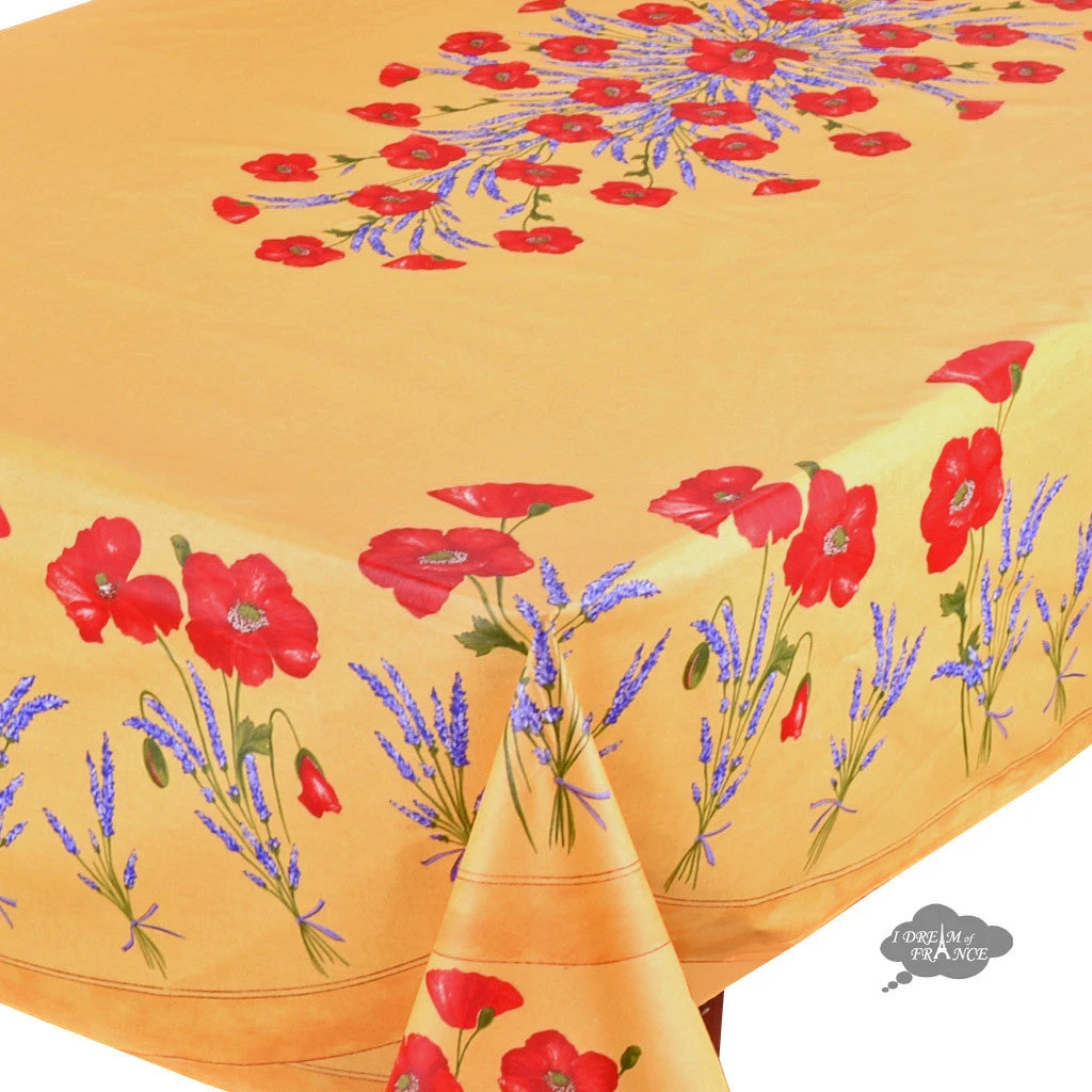 60×96″ Rectangular Poppies Yellow Acrylic Coated Cotton Tablecloth By Tissus Toselli