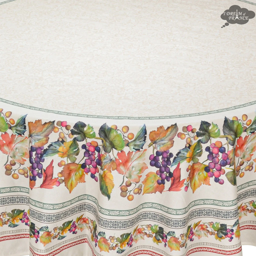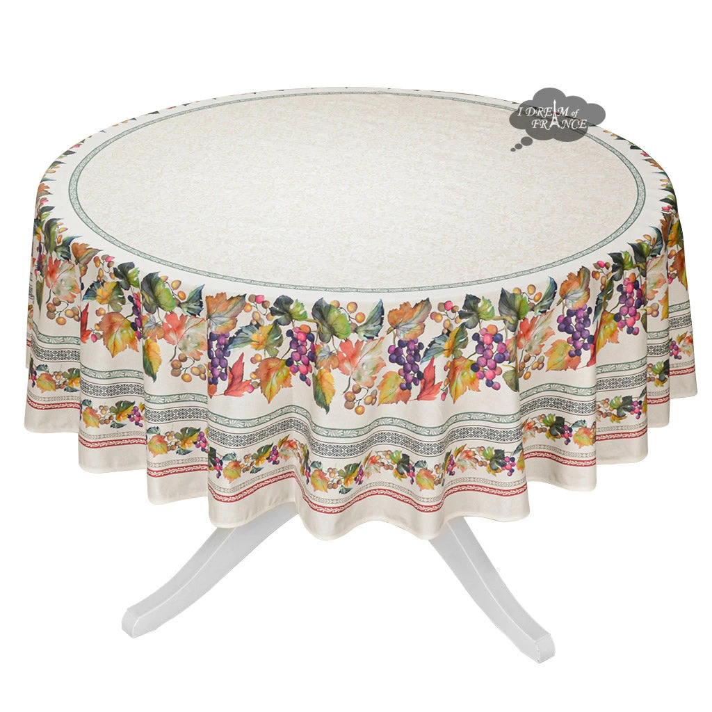 70″ Round Grapes Acrylic-Coated Cotton Tablecloth By Tissus Toselli Table Linens