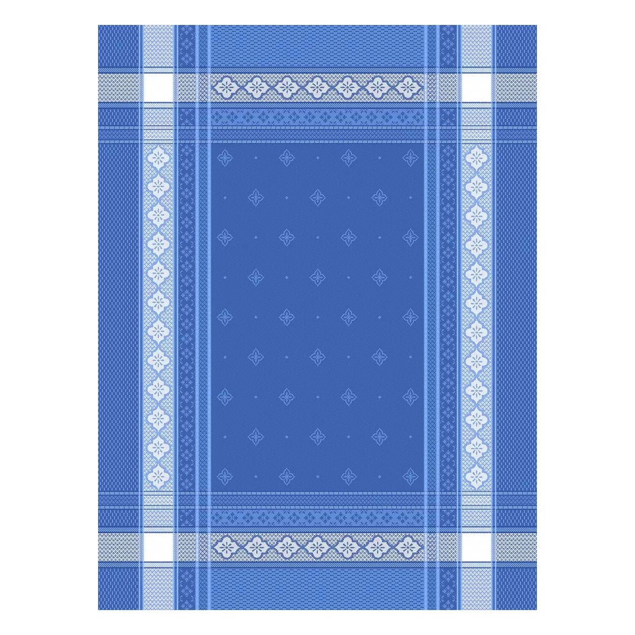 Tissus Toselli 62×78″ Rectangular Oceane Blue French Jacquard Cotton Tablecloth By L’Ensoleillade