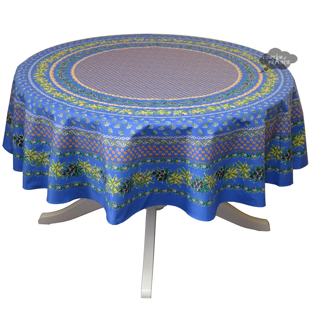 Le Cluny French Linens 70″ Round Olives Blue Provence Tablecloth By Le Cluny Table Linens