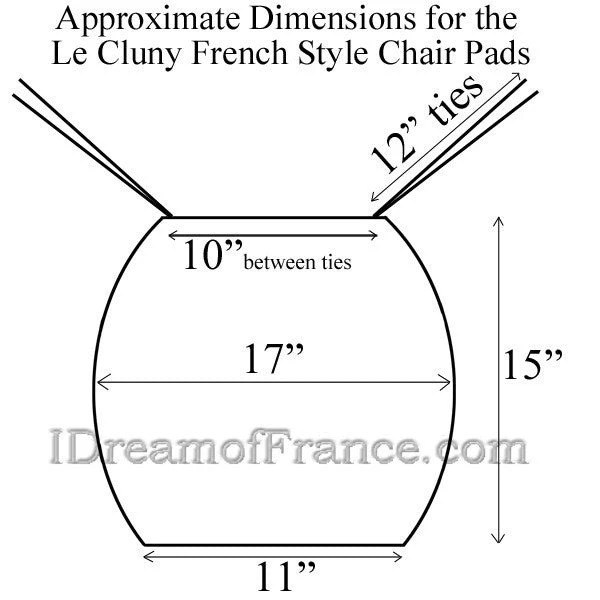 From Le Cluny French Country Collection, these coated chair pads will coordinate with our Lisa red table linens. They are reversible and 100% cotton coated with acrylic to make them stain resistant. Their shape is perfect for French country chairs with a narrow back. Please see the diagram with the approximate dimensions to make sure they will fit your chairs.