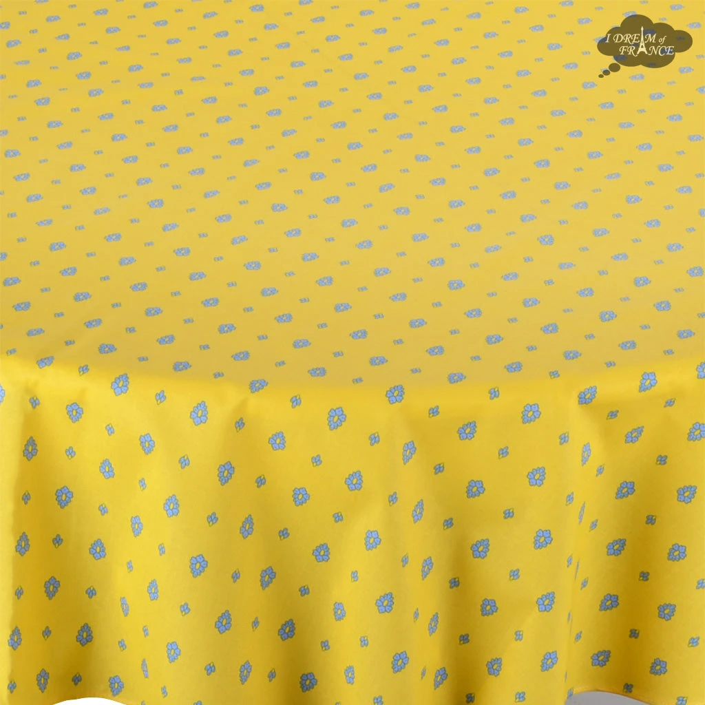 Le Cluny French Linens Table Linens 60″ Round Grapes Yellow All-Over Acrylic-Coated Cotton Provence Tablecloth By Le Cluny