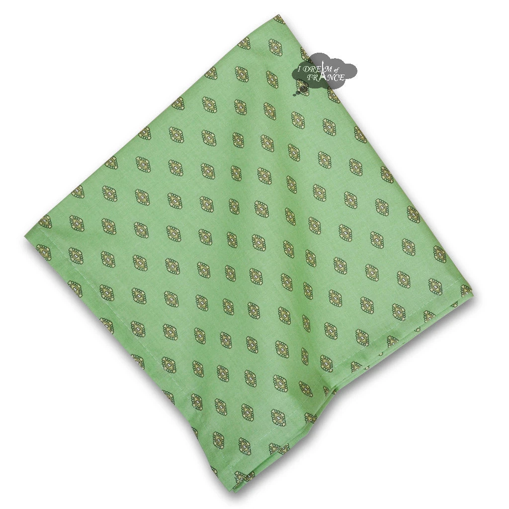 From Le Cluny French Country Collection, these cotton napkins will compliment our Lisa pistachio line or just look great on their own. It features small flowers on a pistachio green background. They are 100% cotton. Napkins are NOT coated. These napkins measure measures 18″ across. Sold individually. Made in France.